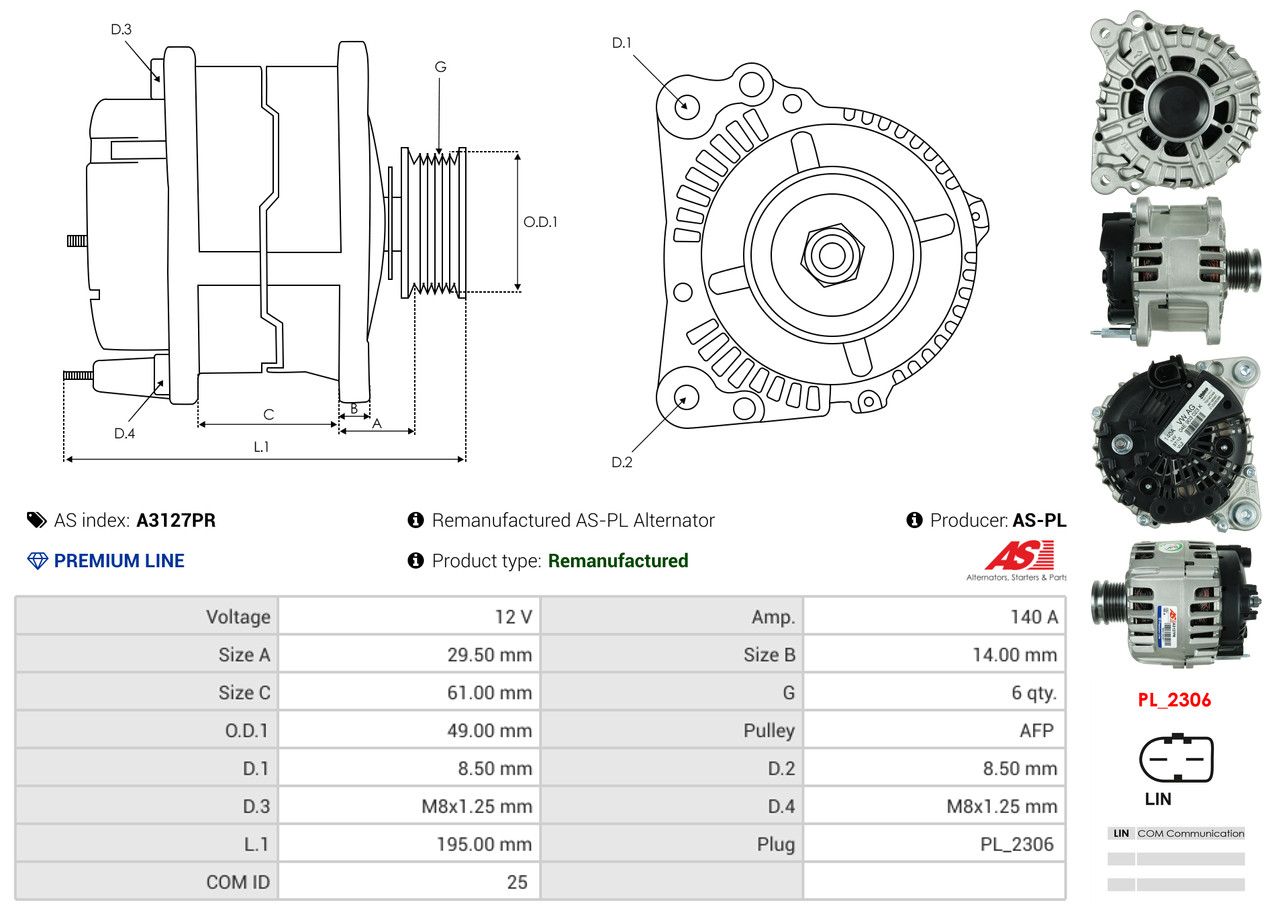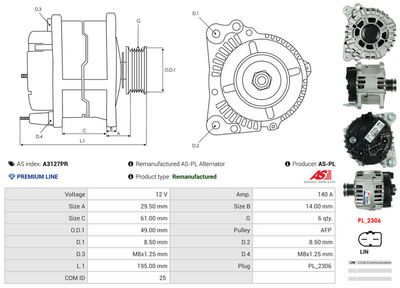 AS-PL Generator A3127PR Wiederaufbereitet AS-PL