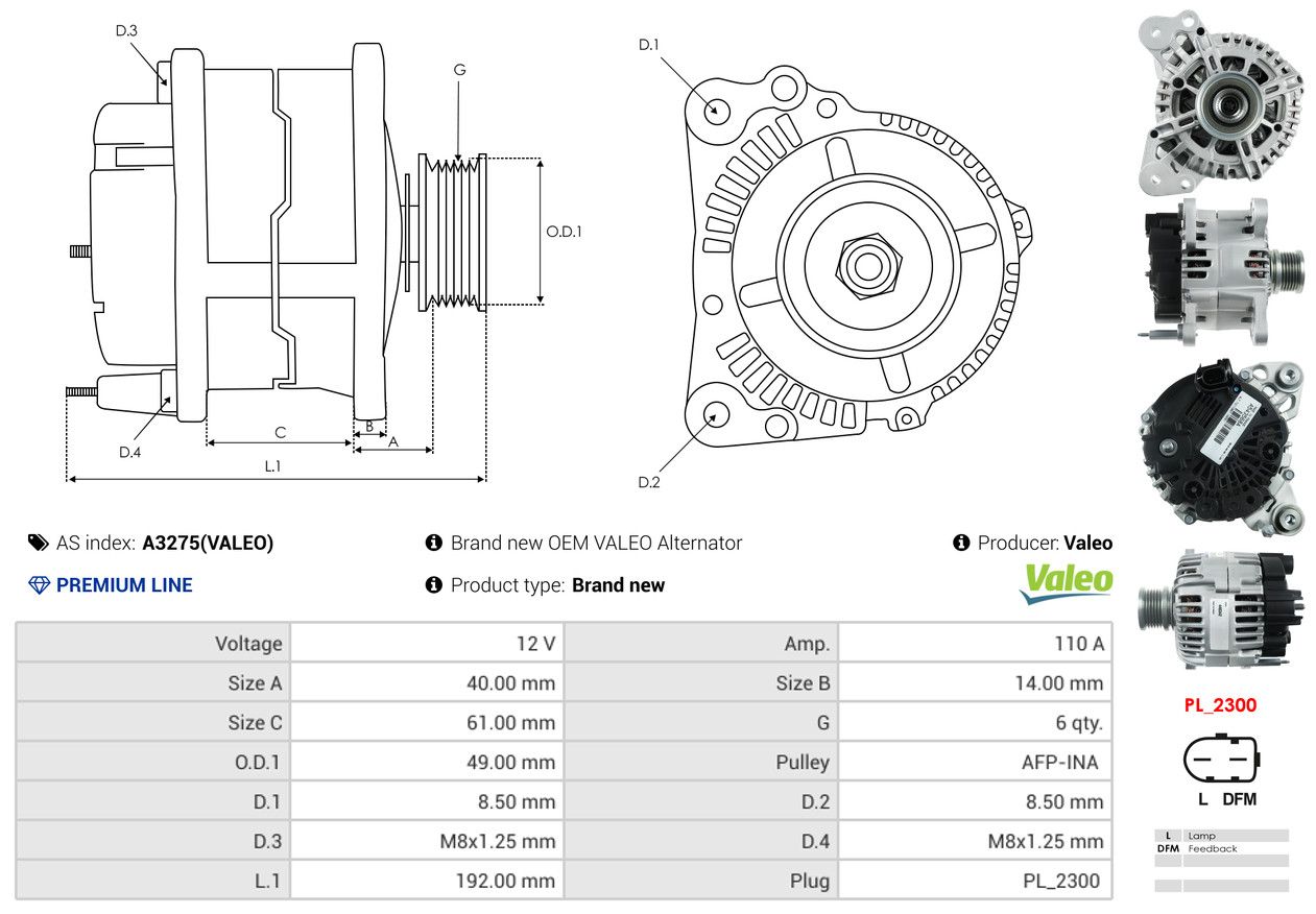 AS-PL Generator A3275(VALEO) Valeo
