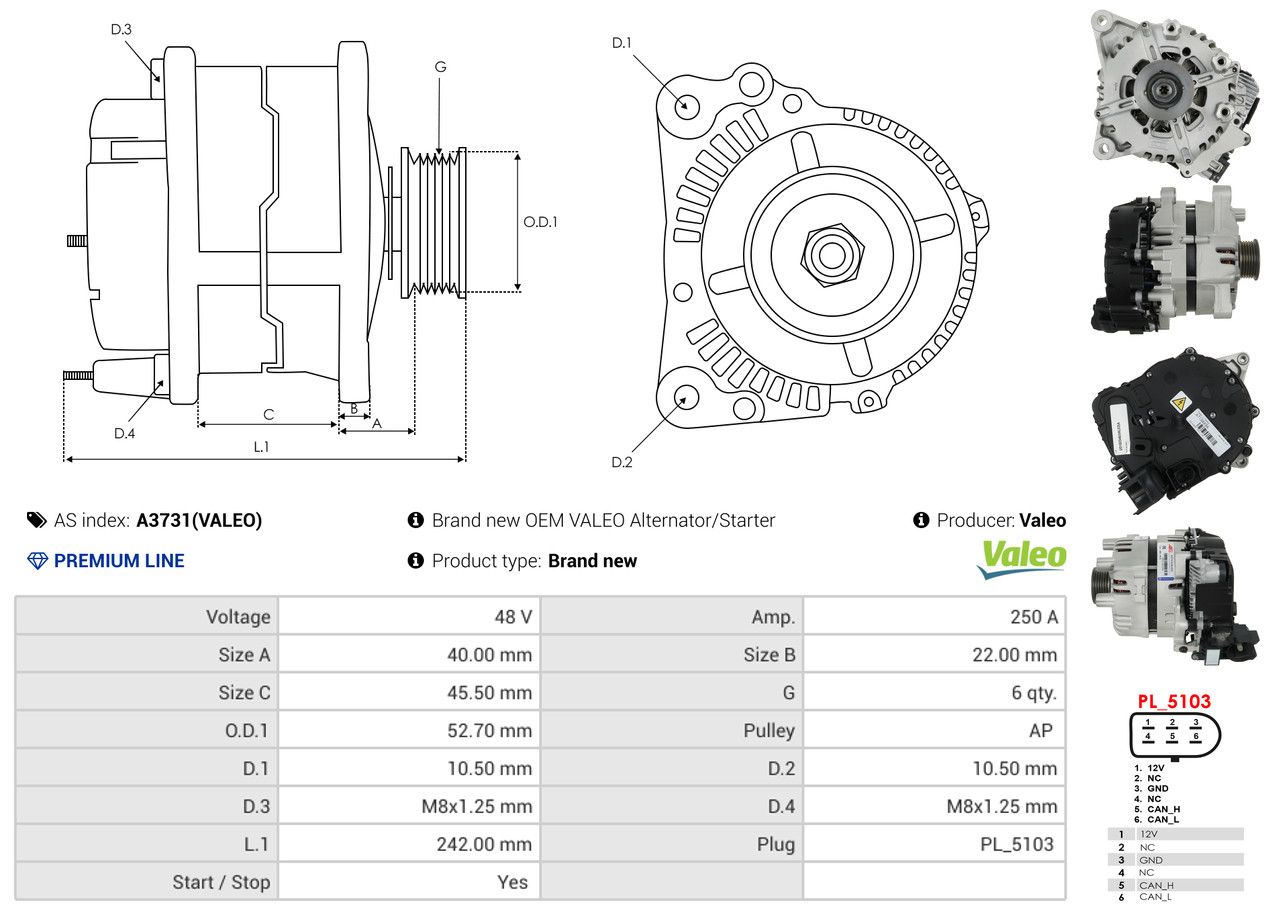 AS-PL Generator A3731(VALEO) Valeo