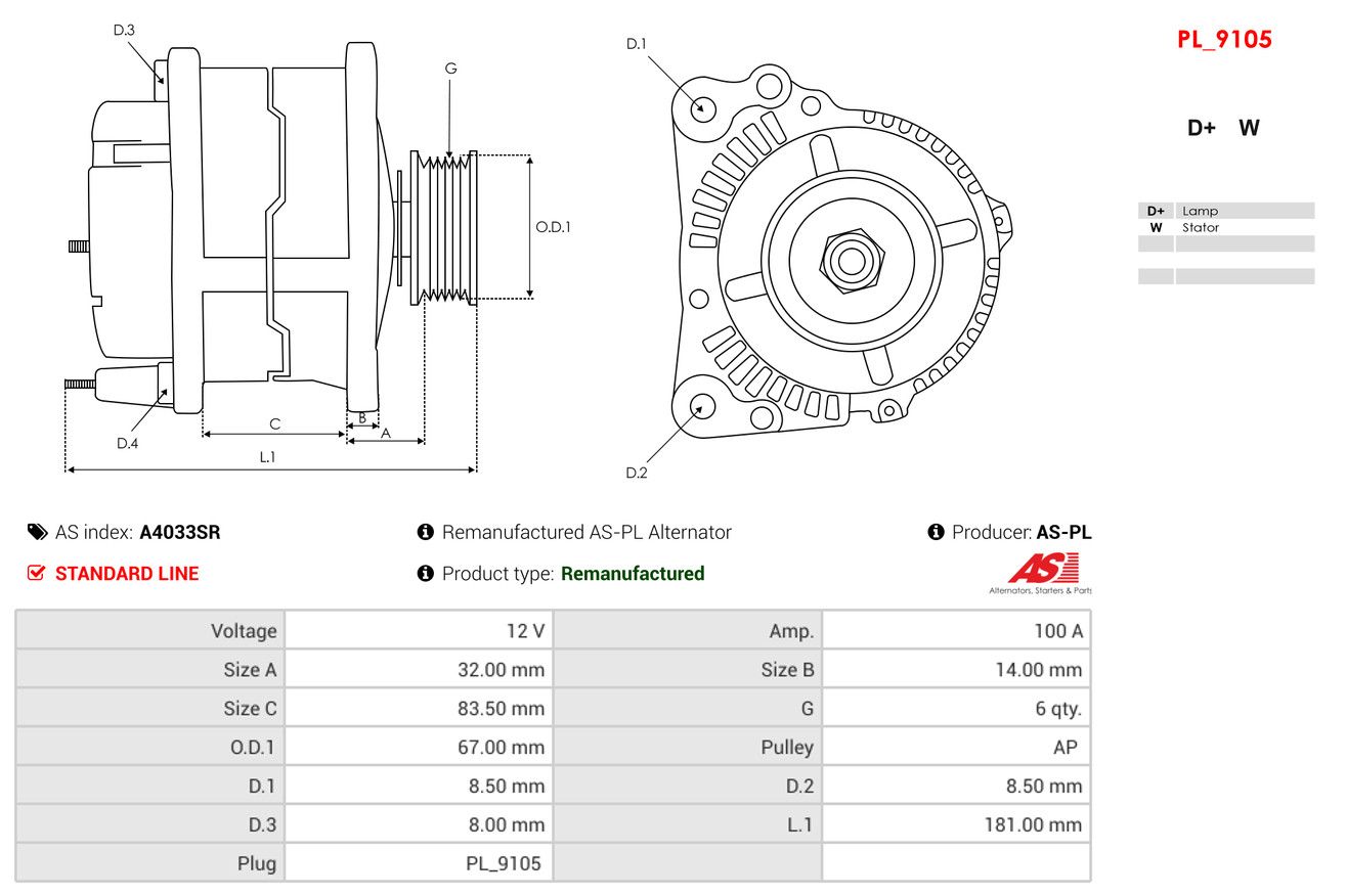 AS-PL Generator A4033SR Wiederaufbereitet AS