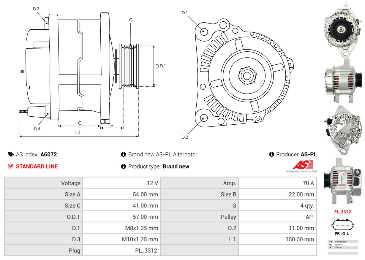 AS-PL Generator A6072 Brandneu AS-PL