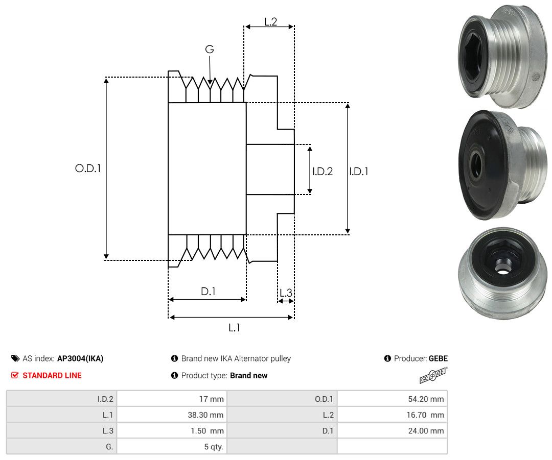 AS-PL Riemenscheibe, Generator AP3004(IKA) GEBE