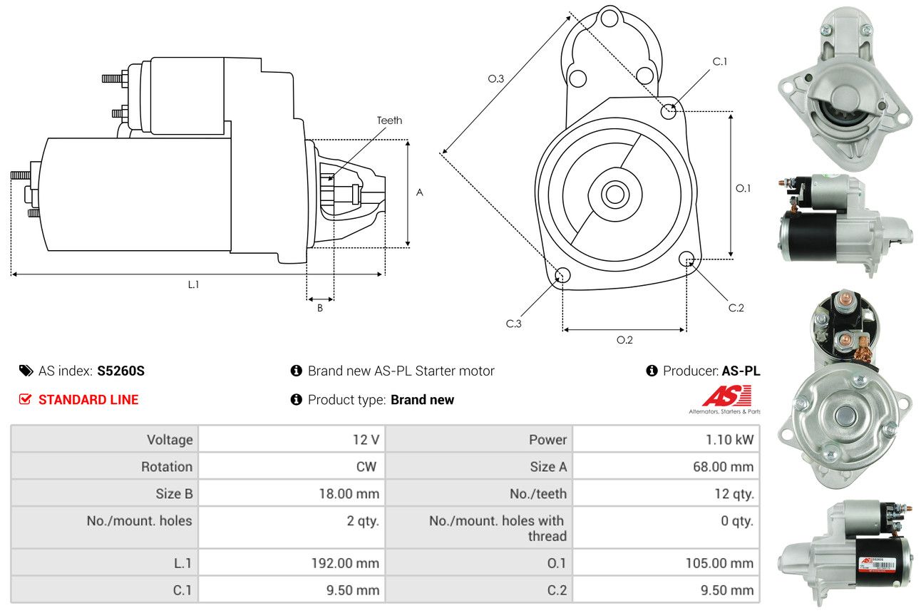 AS-PL Starter S5260S Brandneu AS-PL