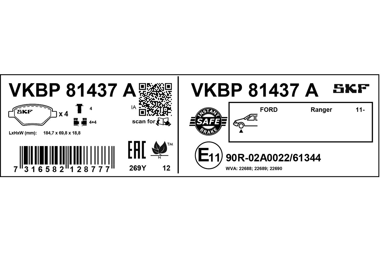 SKF Bremsbelagsatz, Scheibenbremse VKBP 81437 A