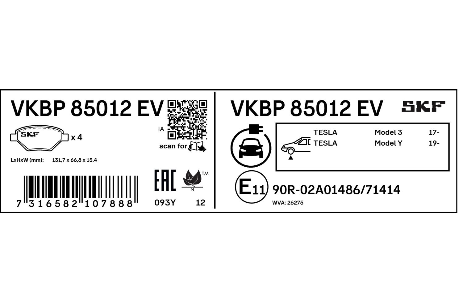 SKF Bremsbelagsatz, Scheibenbremse VKBP 85012 EV