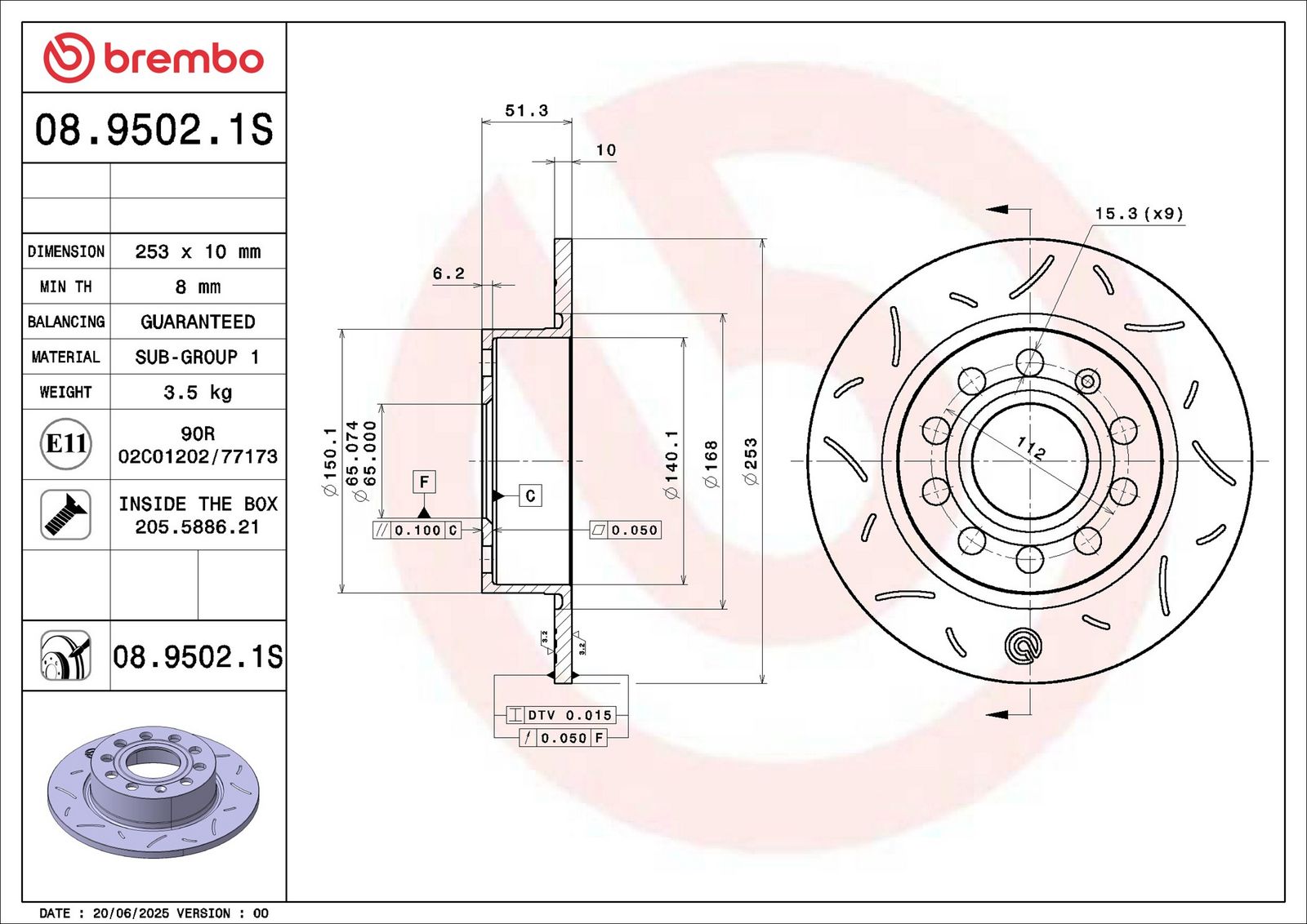 BREMBO Bremsscheibe 08.9502.1S