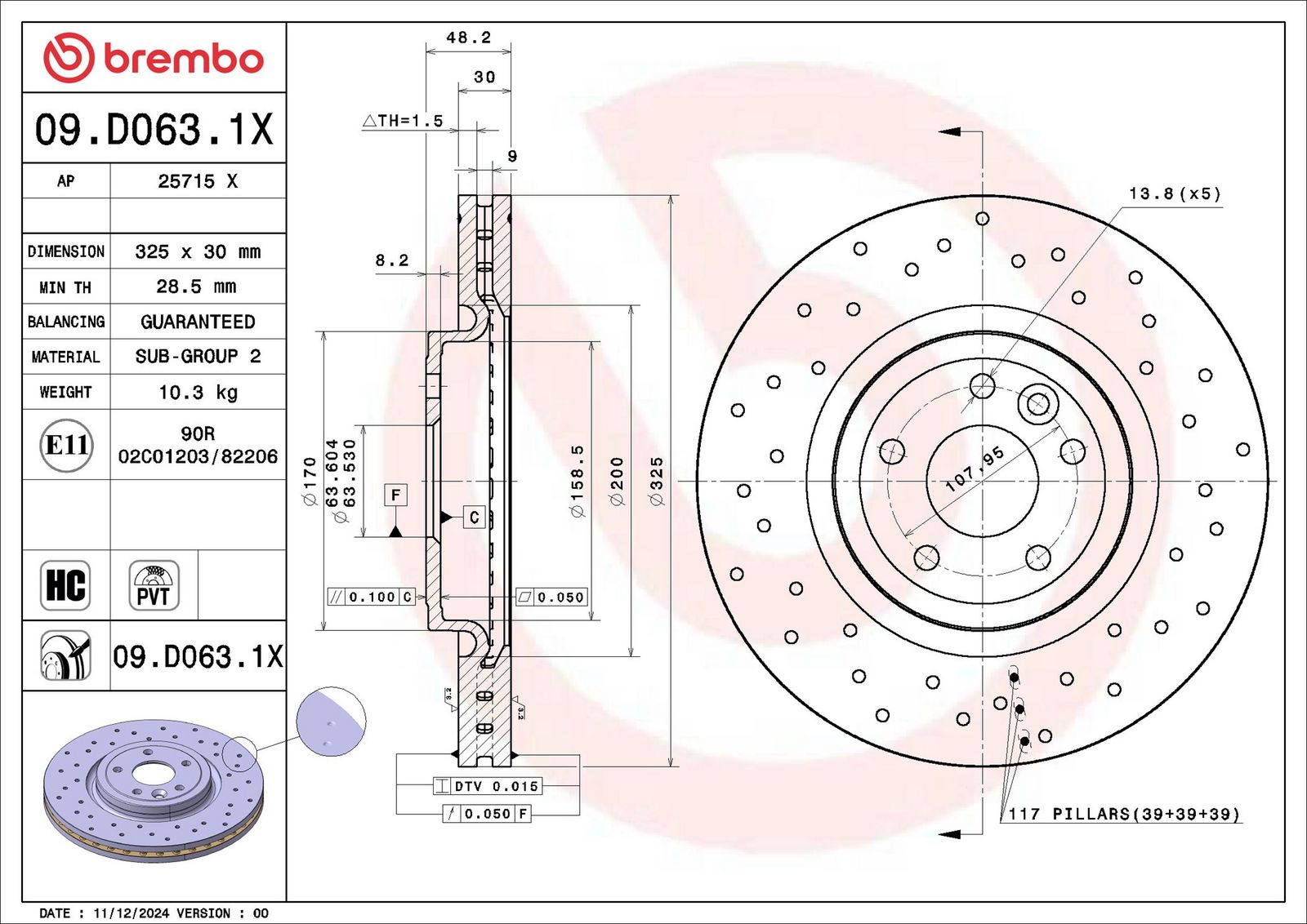 • Bremsscheibenart: gelocht/innenbel.