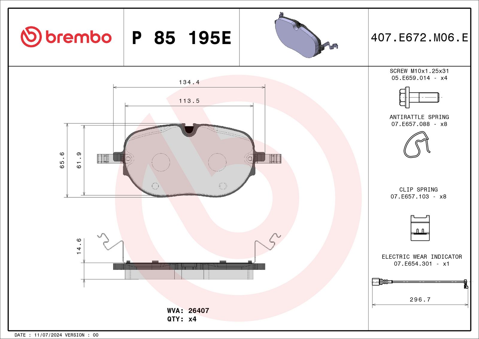 BREMBO Bremsbelagsatz, Scheibenbremse P 85 195E BEYOND LINE - EV