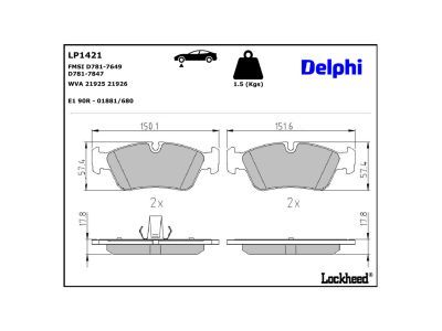 DELPHI Bremsbelagsatz, Scheibenbremse LP1421