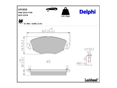DELPHI Bremsbelagsatz, Scheibenbremse LP1533