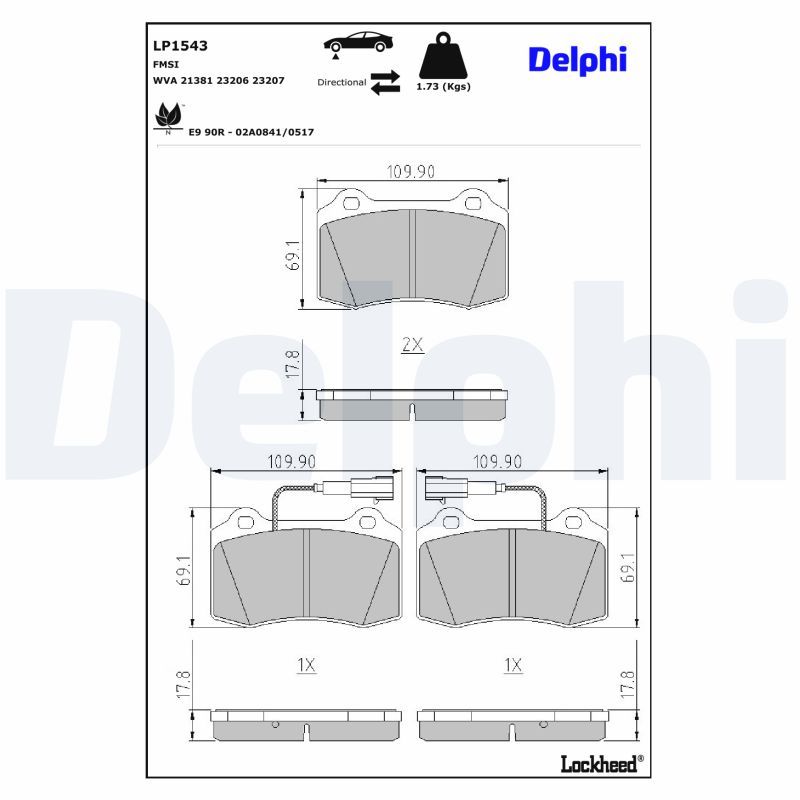 DELPHI Bremsbelagsatz, Scheibenbremse LP1543