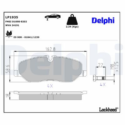 DELPHI Bremsbelagsatz, Scheibenbremse LP1935