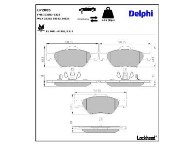 DELPHI Bremsbelagsatz, Scheibenbremse LP2005
