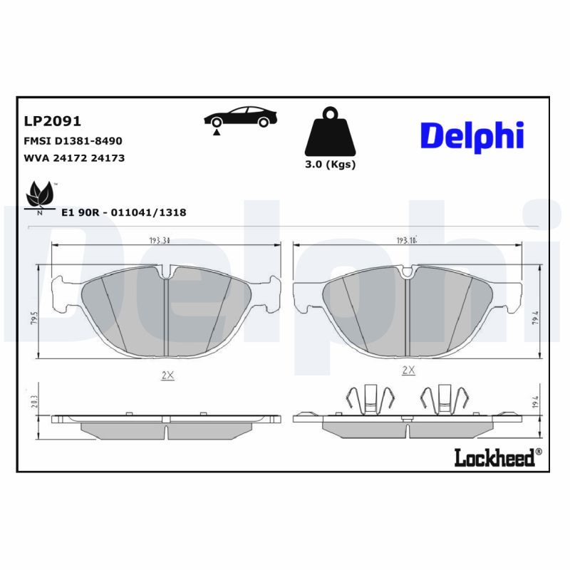 DELPHI Bremsbelagsatz, Scheibenbremse LP2091