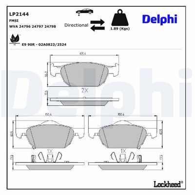 DELPHI Bremsbelagsatz, Scheibenbremse LP2144