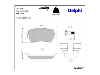 DELPHI Bremsbelagsatz, Scheibenbremse LP2209