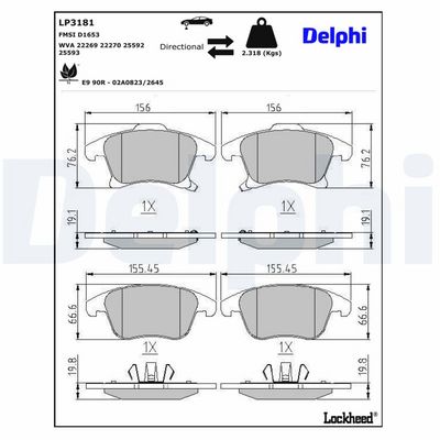 DELPHI Bremsbelagsatz, Scheibenbremse LP3181