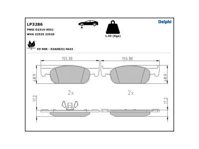 DELPHI Bremsbelagsatz, Scheibenbremse LP3286