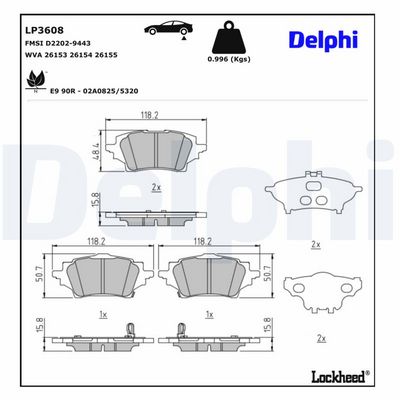 DELPHI Bremsbelagsatz, Scheibenbremse LP3608
