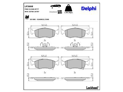 DELPHI Bremsbelagsatz, Scheibenbremse LP3668