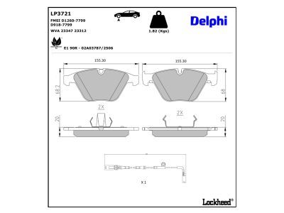 DELPHI Bremsbelagsatz, Scheibenbremse LP3721
