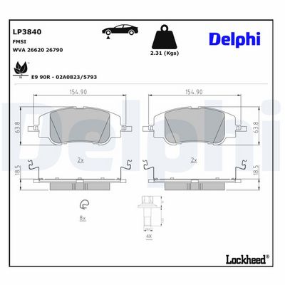 DELPHI Bremsbelagsatz, Scheibenbremse LP3840