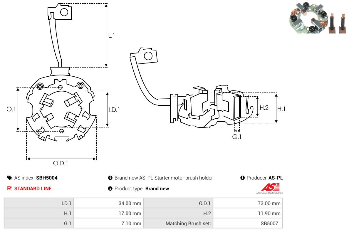 AS-PL Halter, Kohlebürsten SBH5004 Brandneu AS-PL
