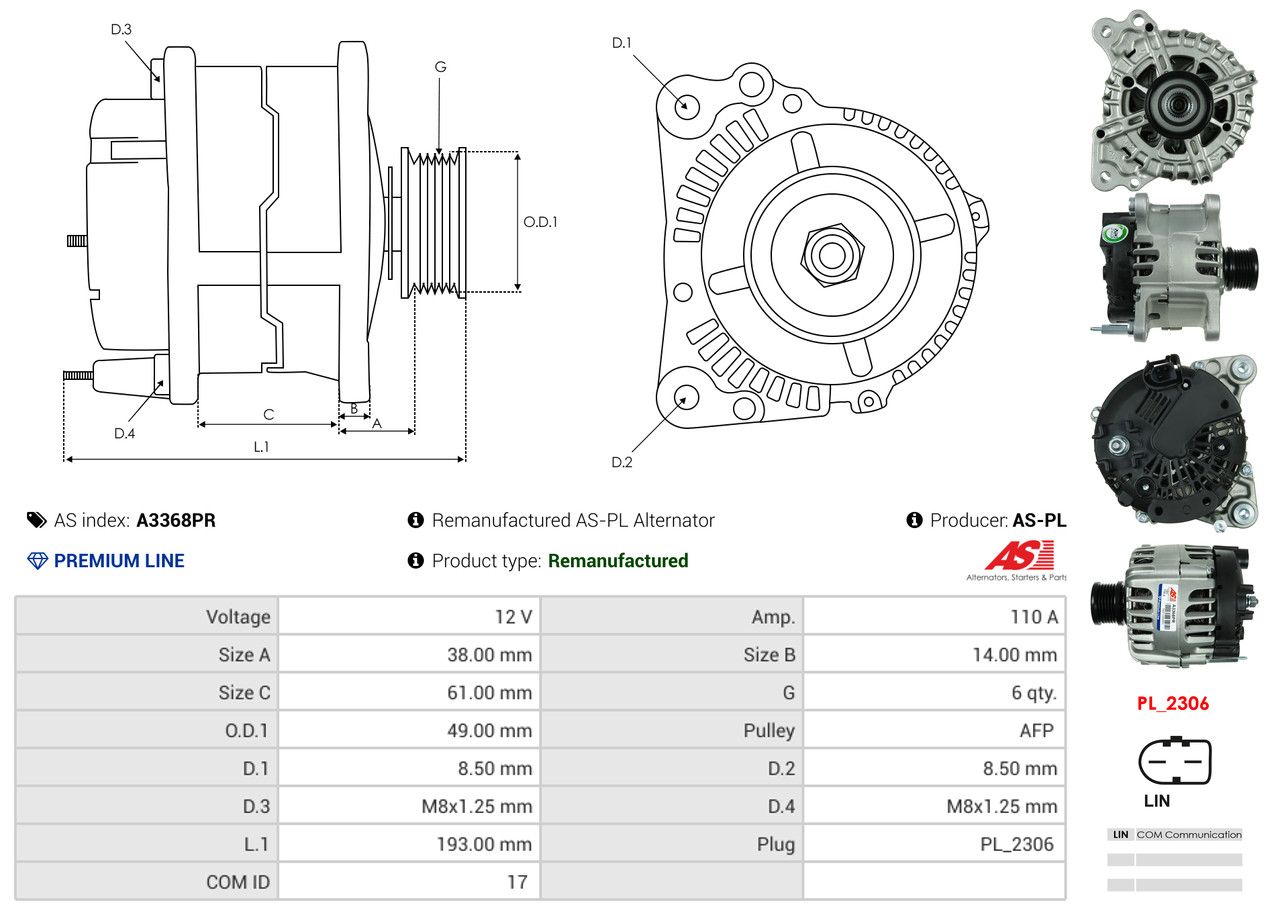 AS-PL Generator A3368PR Wiederaufbereitet AS