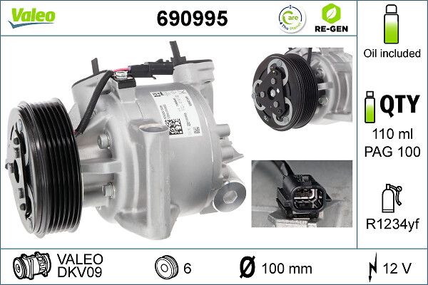 VALEO Kompressor, Klimaanlage 690995 VALEO RE-GEN AT