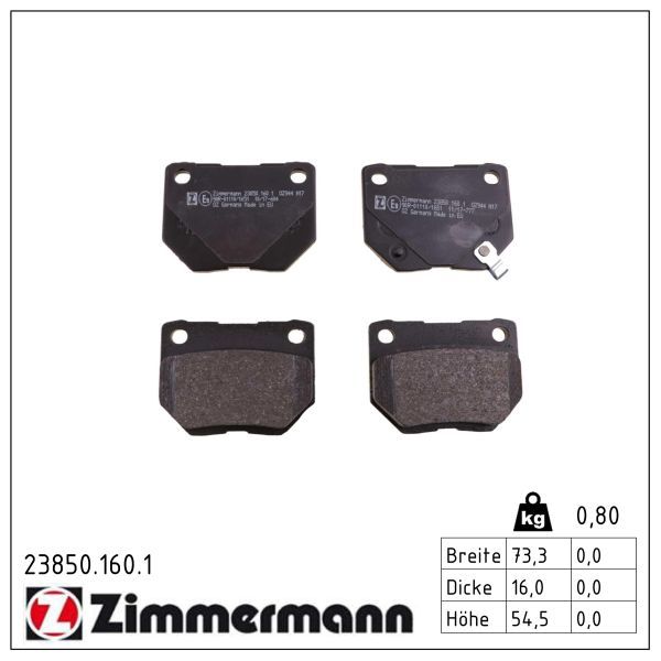 ZIMMERMANN Bremsbelagsatz, Scheibenbremse 23850.160.1