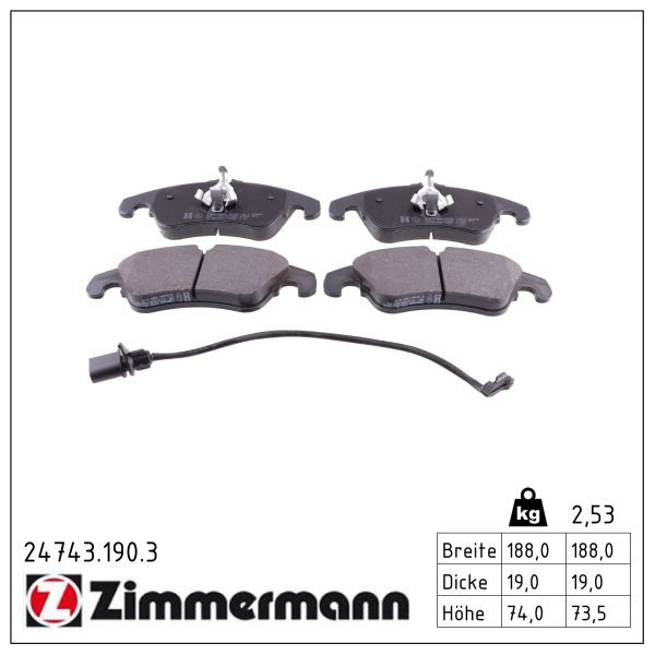 ZIMMERMANN Bremsbelagsatz, Scheibenbremse 24743.190.3