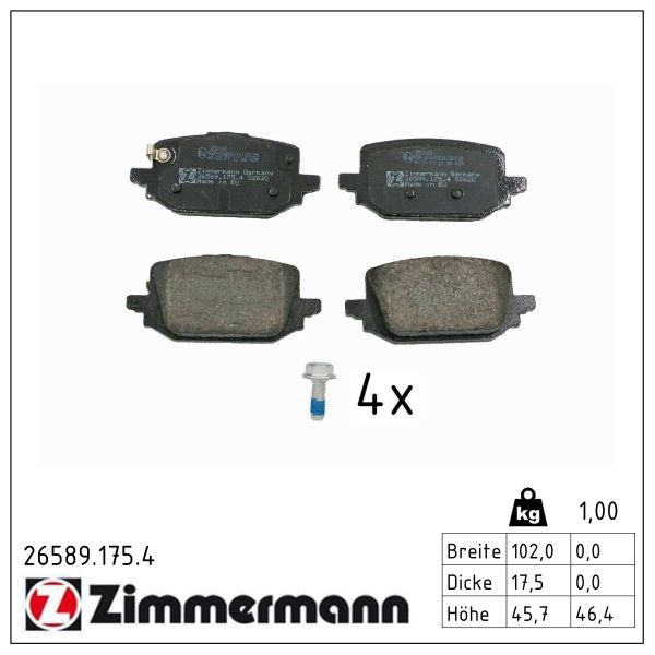 ZIMMERMANN Bremsbelagsatz, Scheibenbremse 26589.175.4