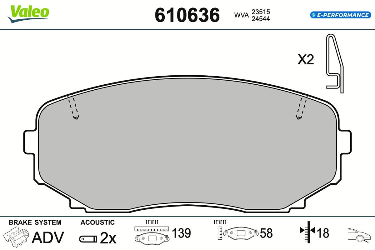 VALEO Bremsbelagsatz, Scheibenbremse 610636 E-PERFORMANCE