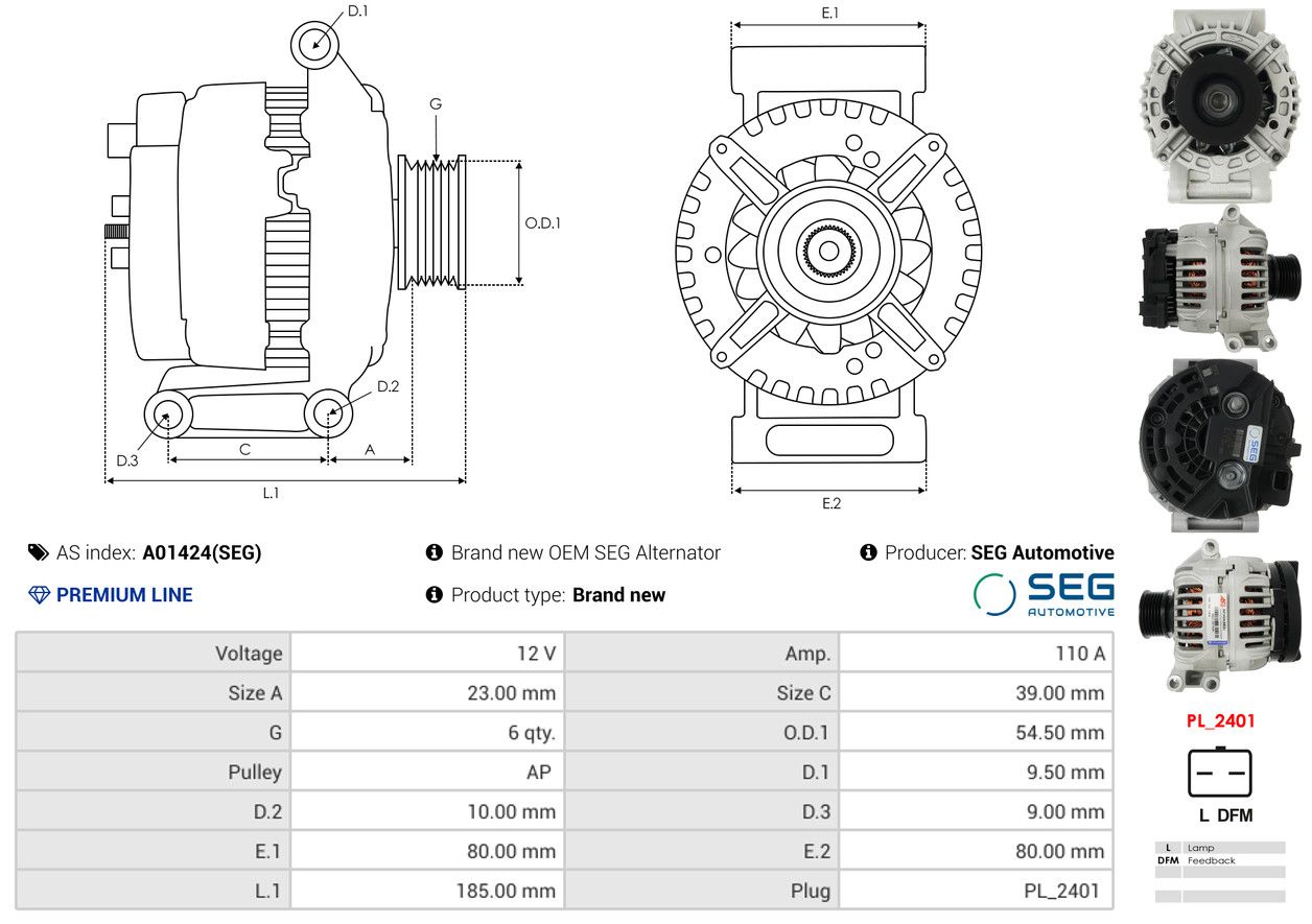AS-PL Generator A01424(SEG) SEG Automotive