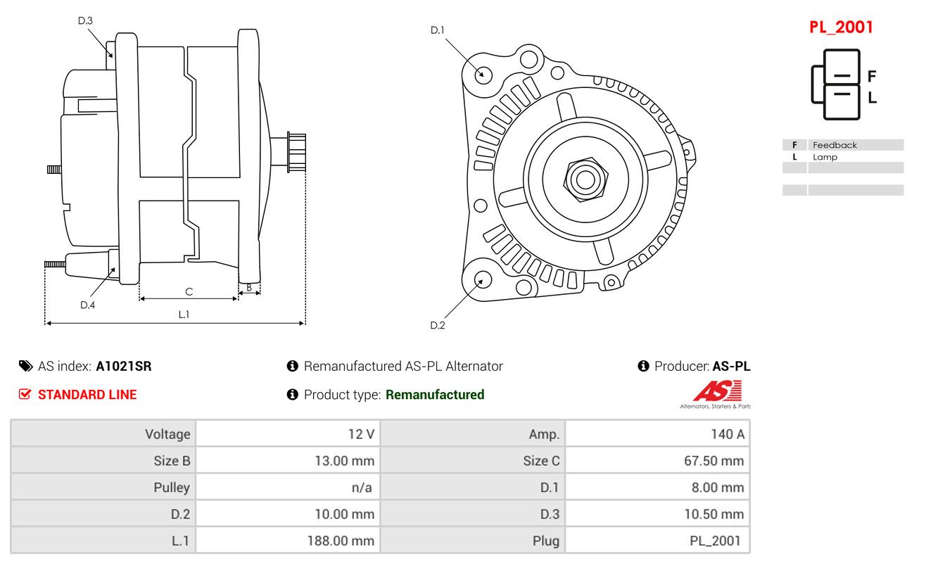 AS-PL Generator A1021SR Wiederaufbereitet AS