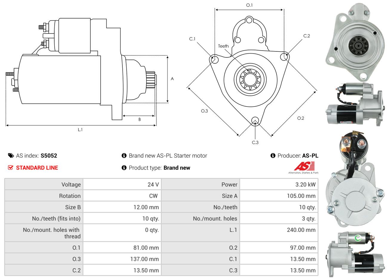AS-PL Starter S5052 Brandneu AS-PL