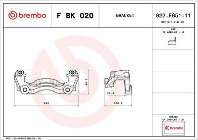 BREMBO Bremssattelhaltersatz F BK 020 PRIME LINE