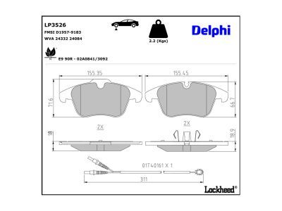 DELPHI Bremsbelagsatz, Scheibenbremse LP3526