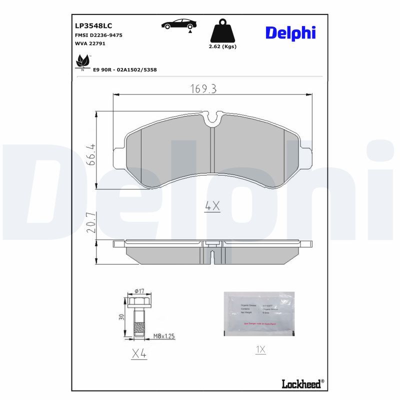DELPHI Bremsbelagsatz, Scheibenbremse LP3548LC