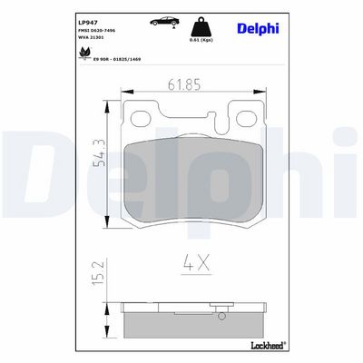 DELPHI LP947 Bremsbelagsatz, Scheibenbremse