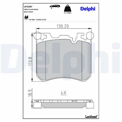 DELPHI LP2287 Kit pastiglie freno, Freno a disco