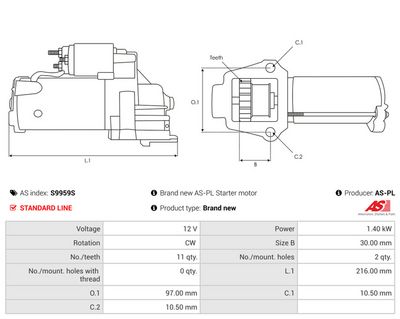 AS-PL S9526P Motorino d'avviamento