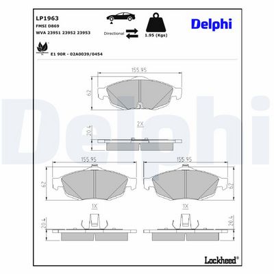 DELPHI LP1963 Kit de plaquettes de frein, frein à disque