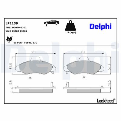 DELPHI LP1139 Kit de plaquettes de frein, frein à disque