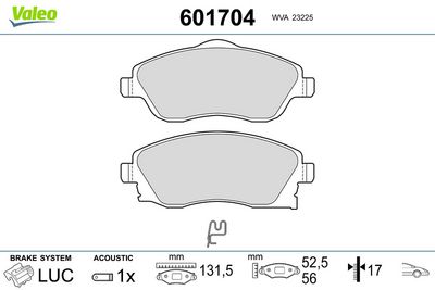 VALEO 601704 Kit de plaquettes de frein, frein à disque