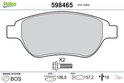 VALEO 598465 Kit de plaquettes de frein, frein à disque