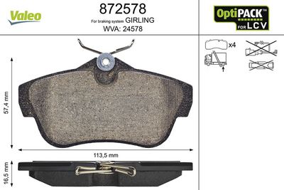 VALEO 872578 Kit de plaquettes de frein, frein à disque OPTIPACK for LCV