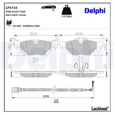 DELPHI LP3716 Kit de plaquettes de frein, frein à disque