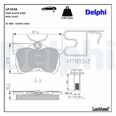 DELPHI LP1626 Kit de plaquettes de frein, frein à disque