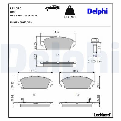 DELPHI LP1526 Kit de plaquettes de frein, frein à disque